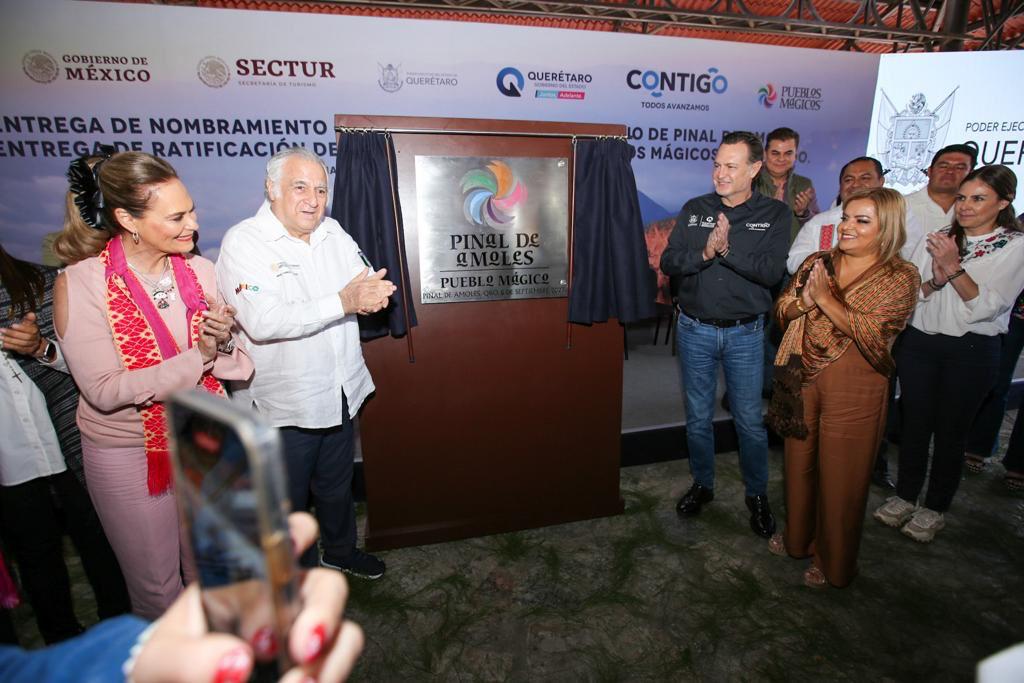 En un emotivo evento, Lupita Ramírez Plaza, la Presidenta Municipal de Pinal de Amoles, recibió con entusiasmo y gratitud el prestigioso nombramiento de Pueblo Mágico de manos del Secretario de Turismo del Gobierno de México, Miguel Torruco Marqués, y el Gobernador del Estado de Querétaro, Mauricio Kuri González.