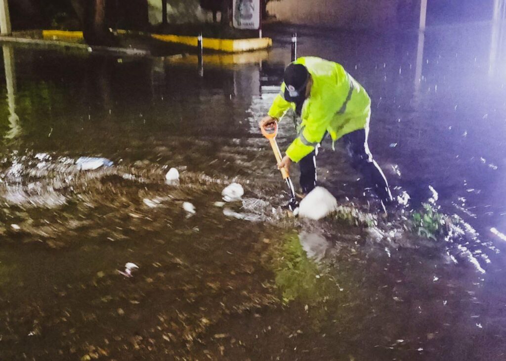 Asimismo, se realizaron acciones de limpieza de rejillas obstruidas por basura en inmediaciones de 5 de Febrero, a la altura de la colonia San Pablo, a fin de agilizar el tránsito vehicular en la zona.
