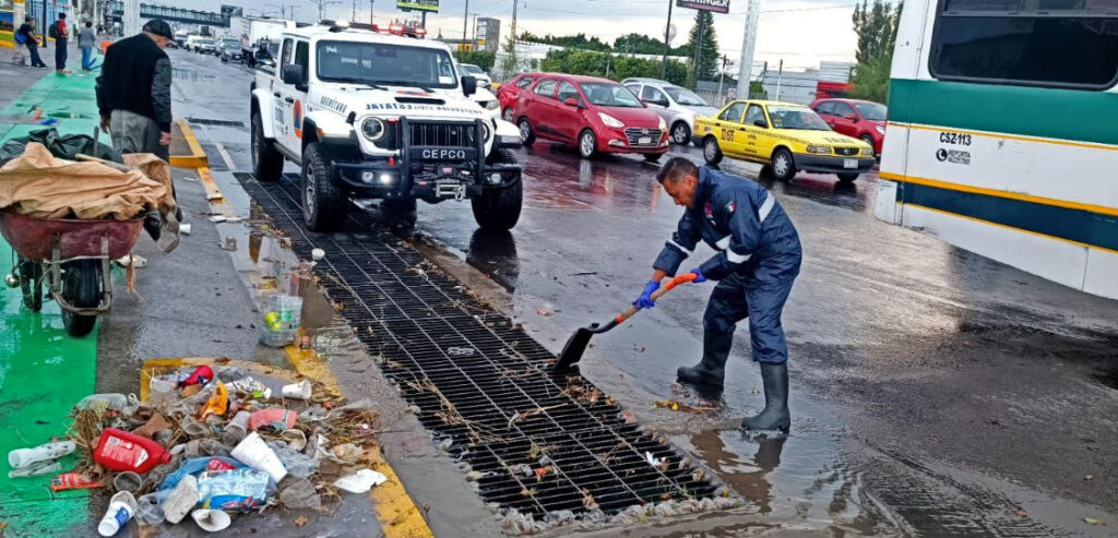 De igual manera, en coordinación con Protección Civil Municipal de Querétaro, se brindó asistencia a reportes generados en las colonias La Joya, Los Molinos, San Roque y Las Teresas, así como el Centro Histórico de la ciudad, en donde se registraron encharcamientos propiciados por acumulación de basura en la infraestructura pluvial.