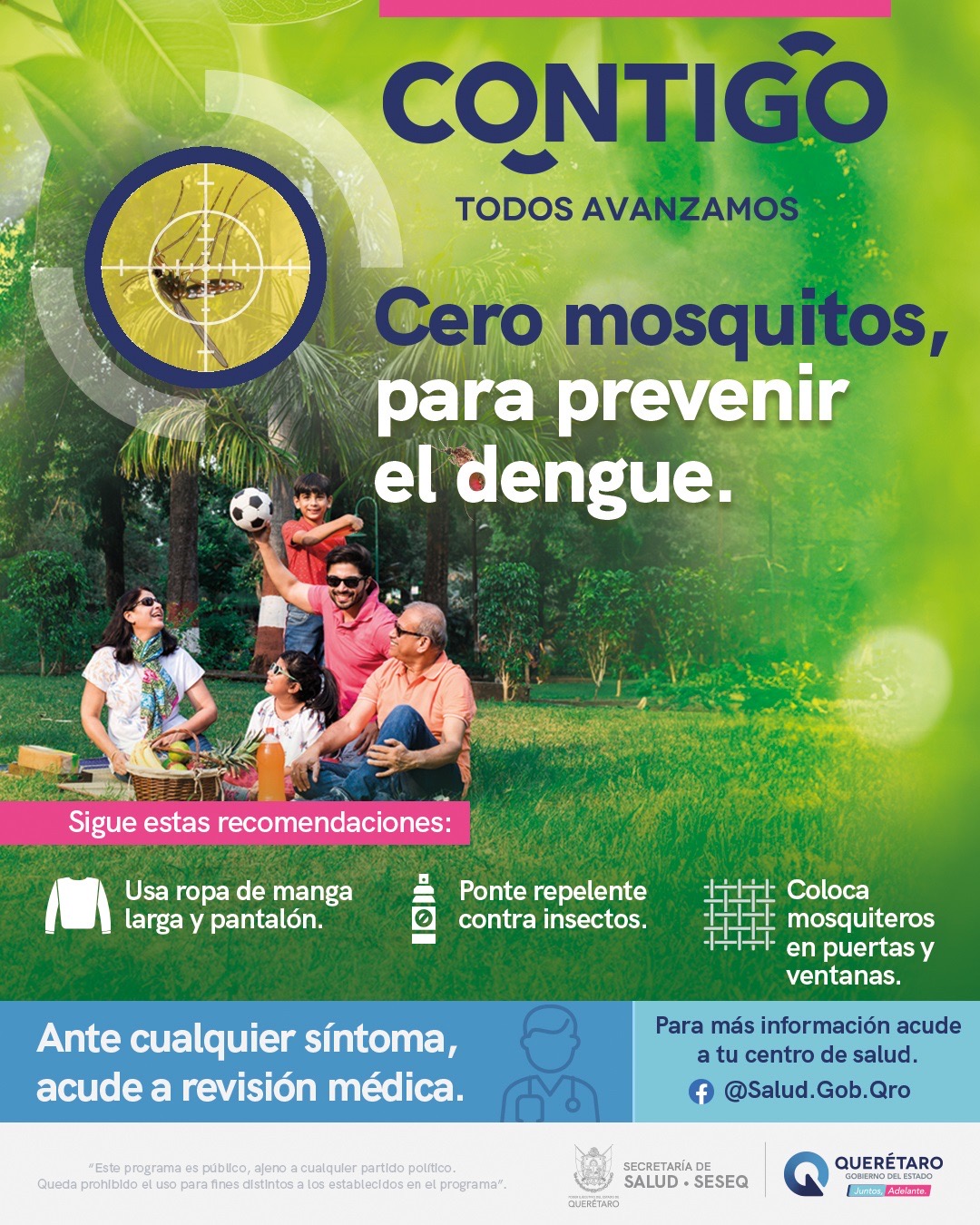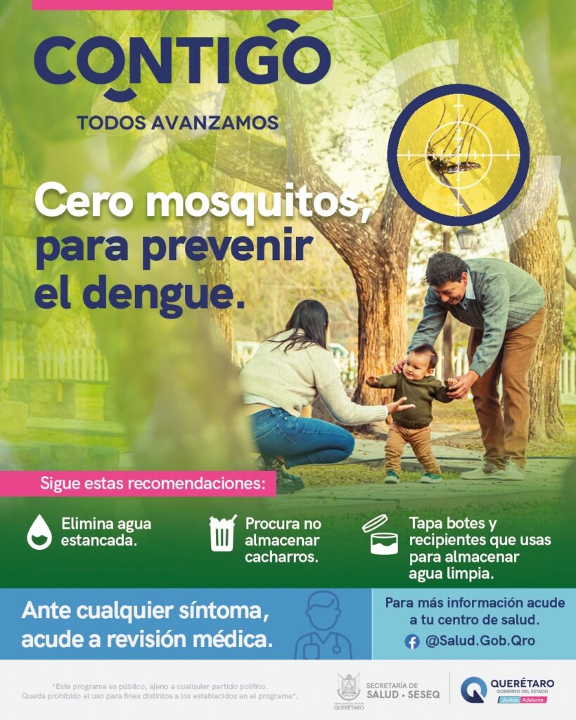También se recomienda a la población que, en caso de presentar síntomas sugestivos al padecimiento, como fiebre elevada, dolor de cabeza, articulaciones, músculos, detrás de los ojos, aparición de ronchas o salpullido (puntos rojos) y malestar general, no se automedique y acuda al Centro de Salud.
