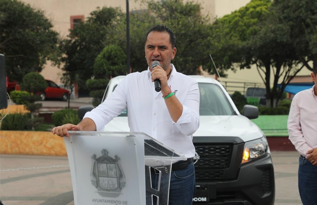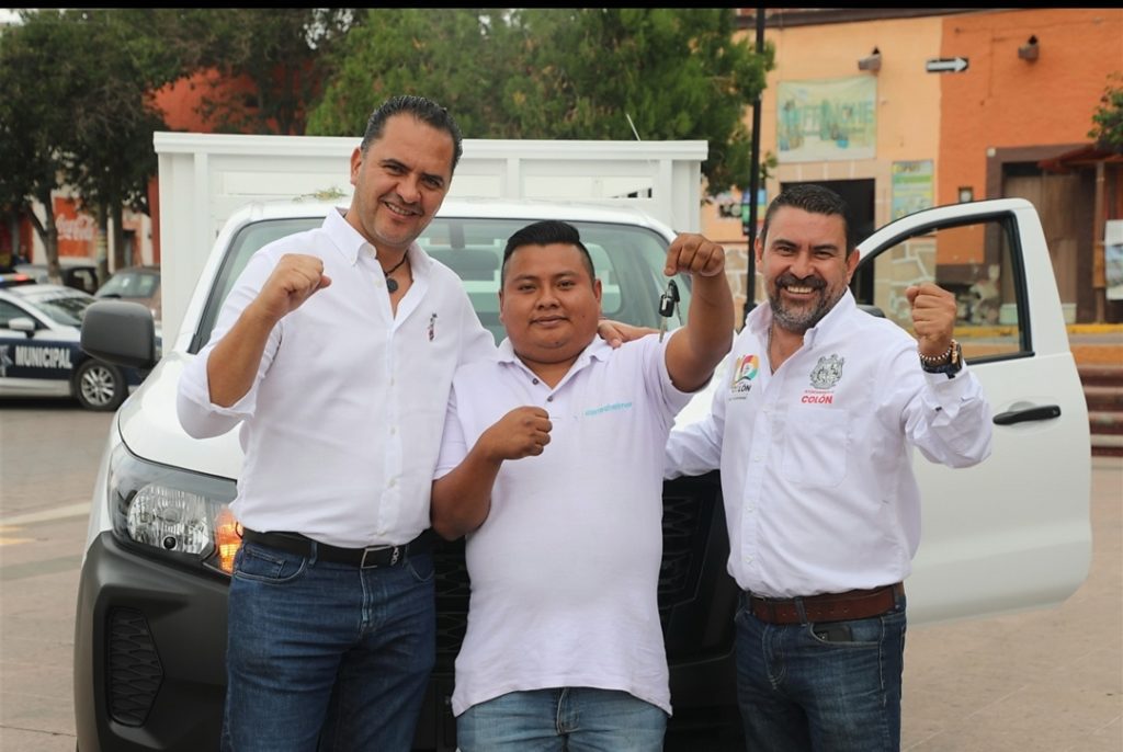 El presidente municipal de Colón, Manuel Montes Hernández; hizo entrega de 12 vehículos que formarán parte del parque vehicular de esta administración.