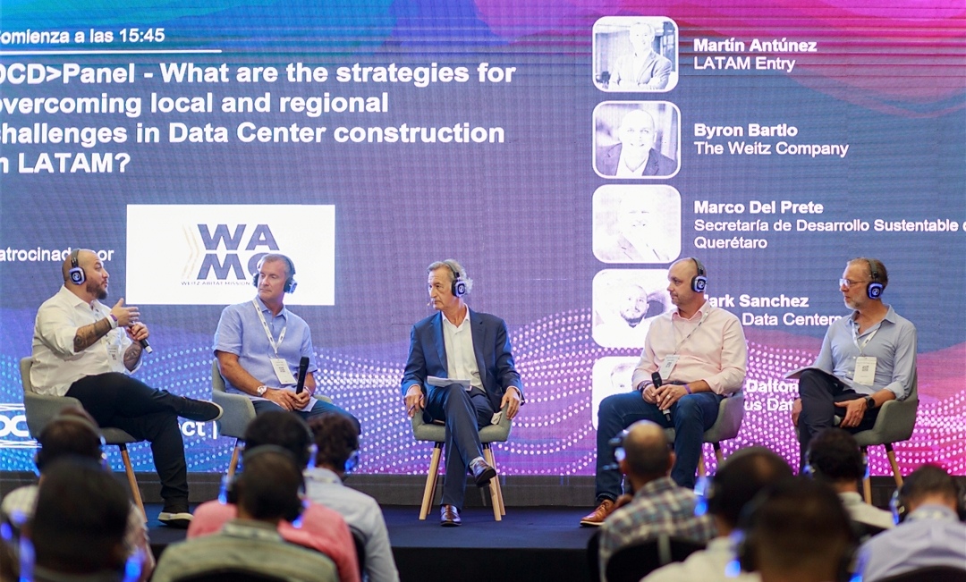 En el panel también se contó con la participación de Byron Bartlo, Subdirector General de Weitz-Abitat Mission Critical; Kevin Dalton, Director de Cumulus Data Centers; Mark Sanchez, Director Senior de Implementación de Scala Data Centers y de Martín Antunez, Fundador de Entrada Latam, quien tomó el papel de moderador en la conversación.