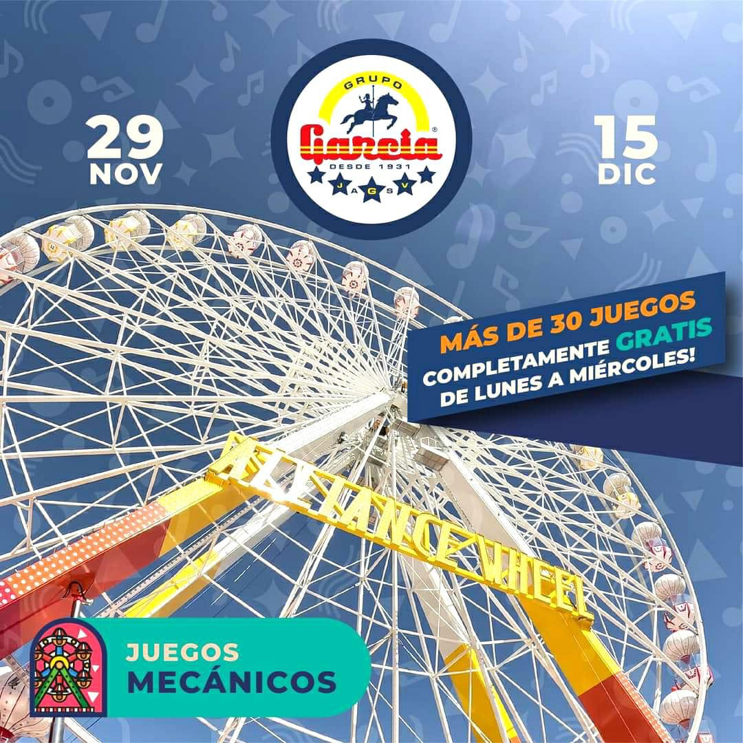 De lunes a miércoles se ofrecerán 30 juegos mecánicos gratis. Las personas con discapacidad no pagan todos los días de feria, siempre y cuando el juego elegido no ponga en riesgo su salud y seguridad y cuenten con documento que acredite su padecimiento.