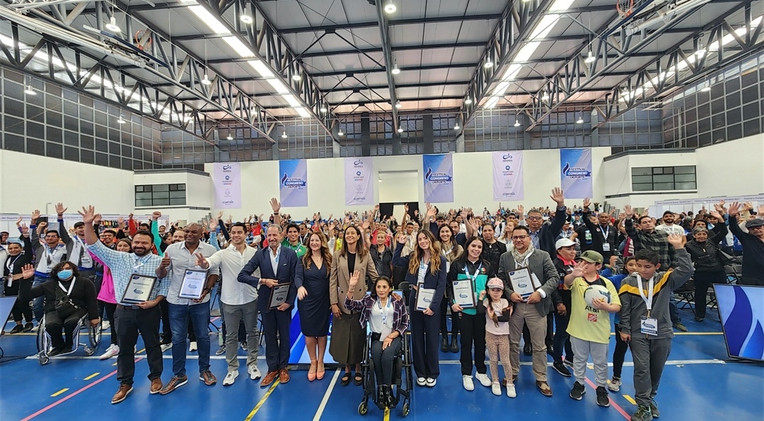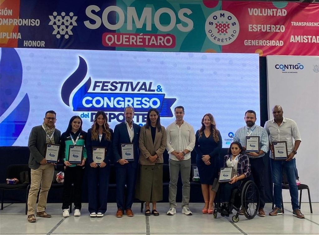 La directora general del Instituto del Deporte y la Recreación del Estado de Querétaro (INDEREQ), Iridia Salazar Blanco, entregó reconocimientos a participantes del Congreso y Festival Deportivo 2023, encuentro que convocó a más de mil 500 participantes.