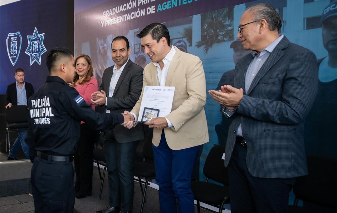 “En El Marqués defendemos la tranquilidad de las familias con estrategia, coordinación y muy buenos policías. Felicito a los nueve egresados que reciben su nombramiento; con ello, también nos ubicamos como el municipio con más policías graduados por el CECAFIS en el estado, con 70 nuevos policías los últimos cuatro años. Los convoco a defender El Marqués, a construir sus entornos de paz, a mantenernos unidos y muy fuertes”.