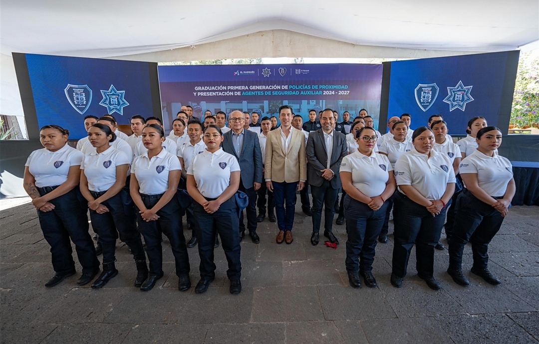 Asimismo, la SSPyTM integró a 30 nuevos agentes de seguridad auxiliar, mismos que serán uno de los primeros contactos con la ciudadanía, coadyuvando a garantizar la seguridad de los marquesinos por medio del patrullaje y vigilancia, permitiendo incrementar la presencia de la Secretaría en el municipio.
