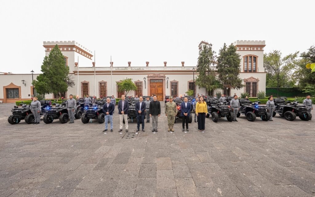 Como parte de estos esfuerzos, se llevó a cabo la toma de protesta de ocho nuevos policías municipales, la integración de 68 nuevos agentes de seguridad auxiliar y la entrega de 24 cuatrimotos totalmente equipadas, que fortalecerán las capacidades operativas de la corporación.