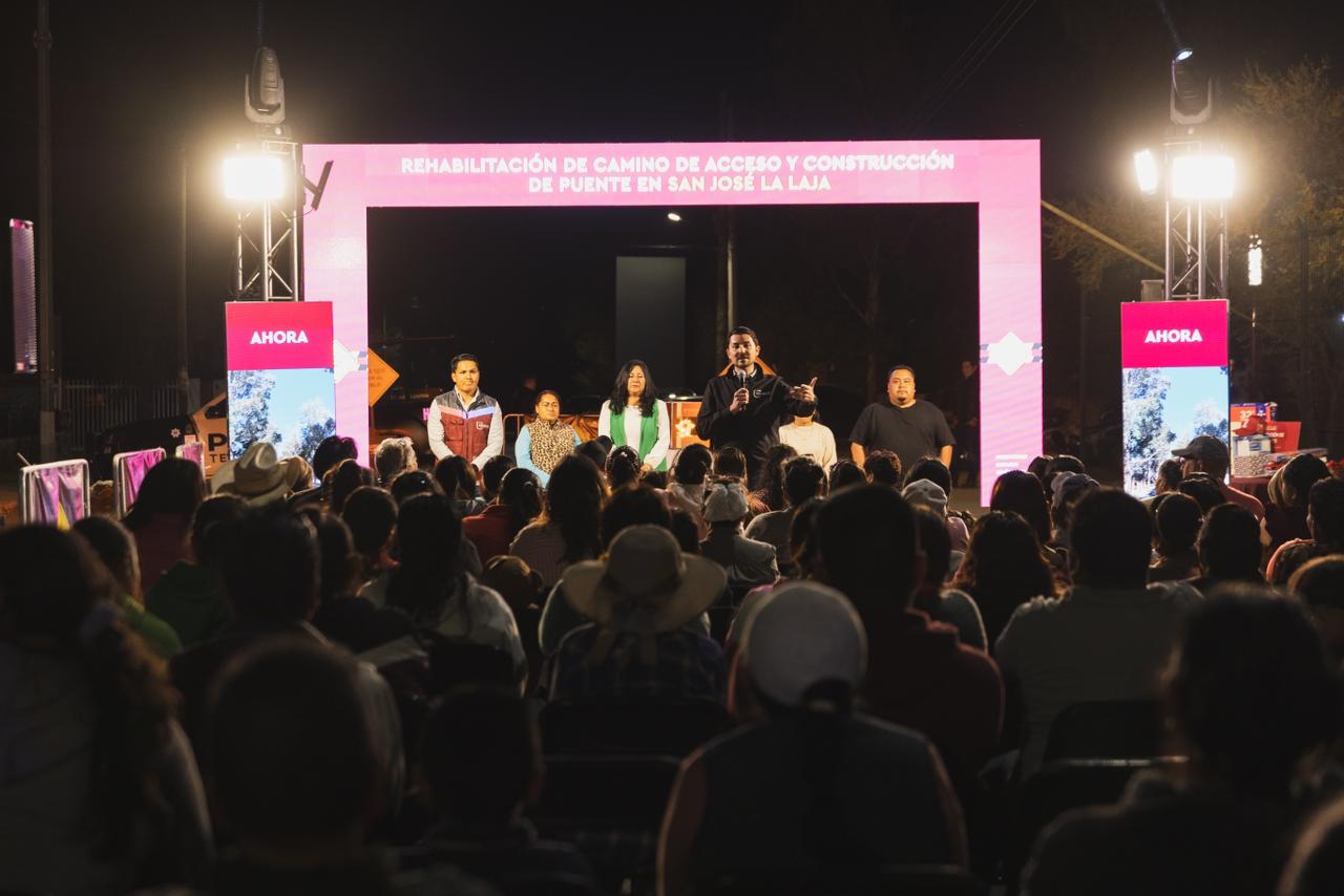 puente en la comunidad de San José La Laja, reafirmando su compromiso de fortalecer la