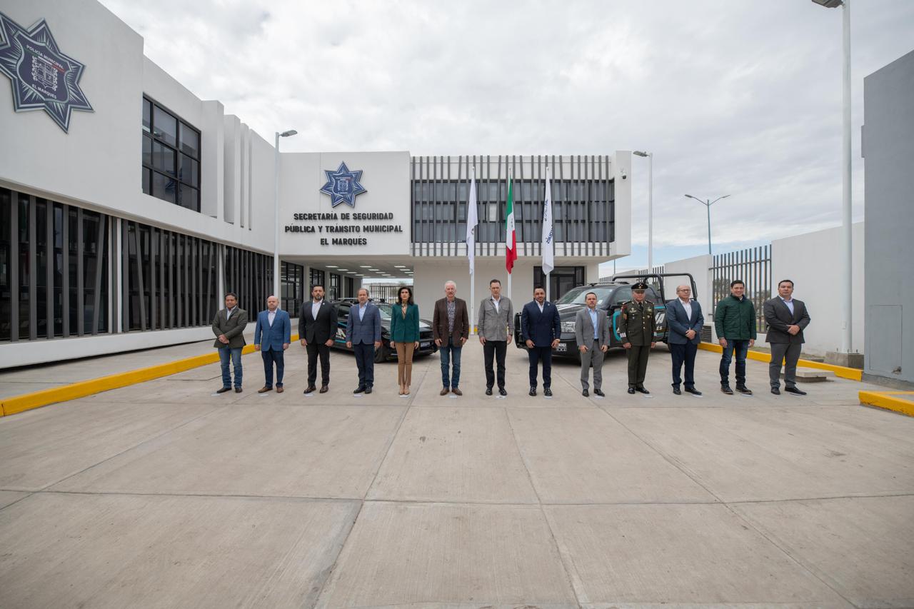 El gobernador del estado de Querétaro, Mauricio Kuri González y el presidente municipal de El Marqués, Enrique Vega Carriles, realizaron la “Inauguración del Nuevo Edificio, Banco de Armas, Entrega de Patrullas y Equipamiento Policial de la Secretaría de Seguridad Pública y Tránsito Municipal de El Marqués”.