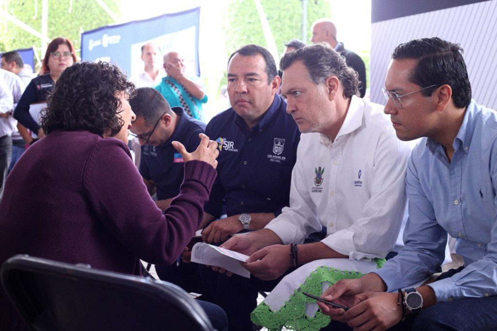 En equipo, el gobernador del estado de Querétaro, Mauricio Kuri González, y el presidente municipal de San Juan del Río, Roberto Cabrera Valencia, atendieron a las y los sanjuanenses que este viernes acudieron a la Jornada Aquí Contigo, que se llevó a cabo en la Plaza Independencia, donde además de realizar trámites, pudieron plantear sus necesidades sobre seguridad, salud, apoyos sociales, educación, entre otros aspectos.