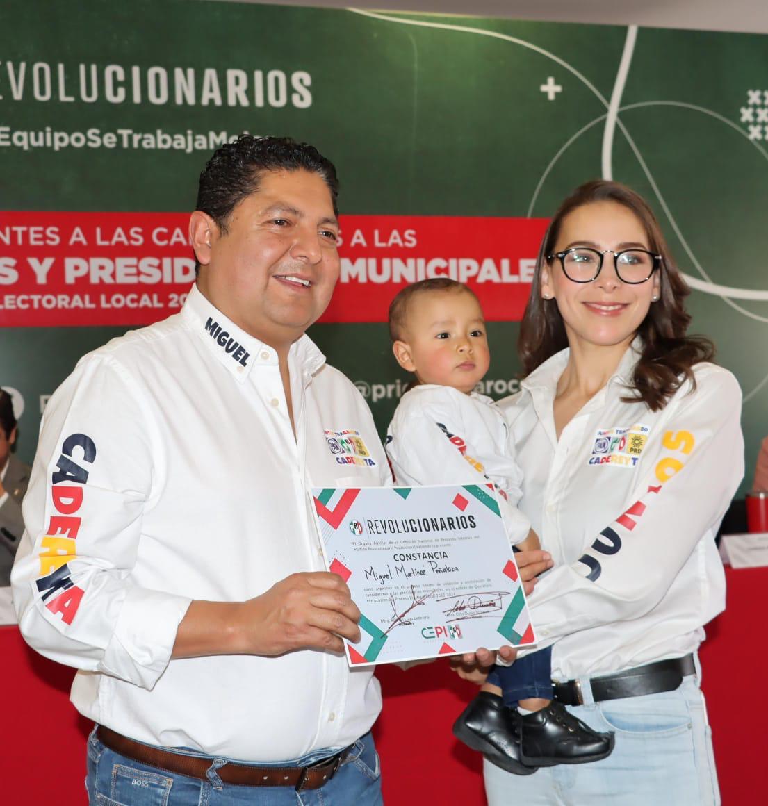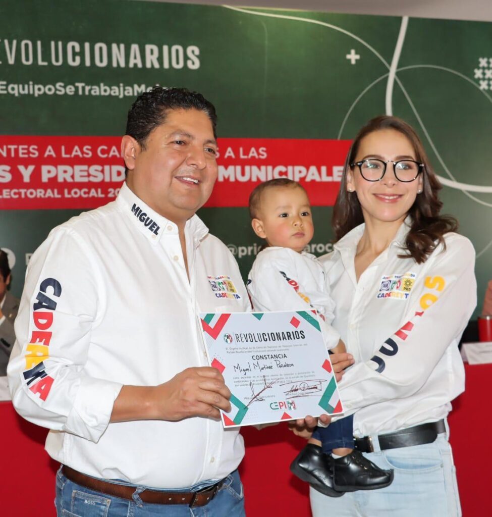 Este domingo, Miguel Martínez Peñaloza recibió esta mañana del Órgano Auxiliar de la Comisión de Procesos Internos del Comité Directivo Estatal del PRI, su constancia como precandidato a la Presidencia Municipal de Cadereyta para el periodo 2024 -2027.