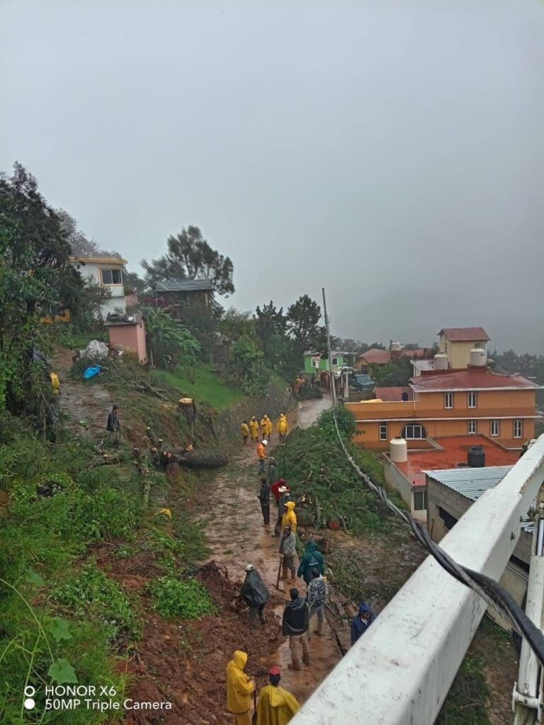 Se trabaja con diversa maquinaria para restablecer la comunicación con las comunidades que permanecen incomunicadas, y, de manera paralela, se realizan labores para el restablecimiento de la energía eléctrica, en coordinación con las instancias correspondientes.