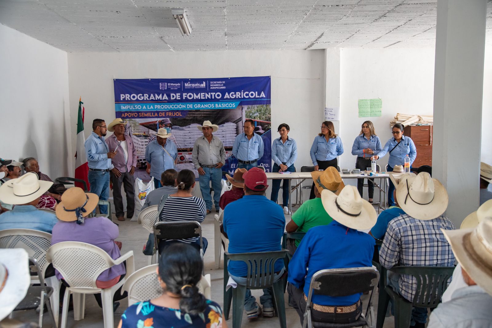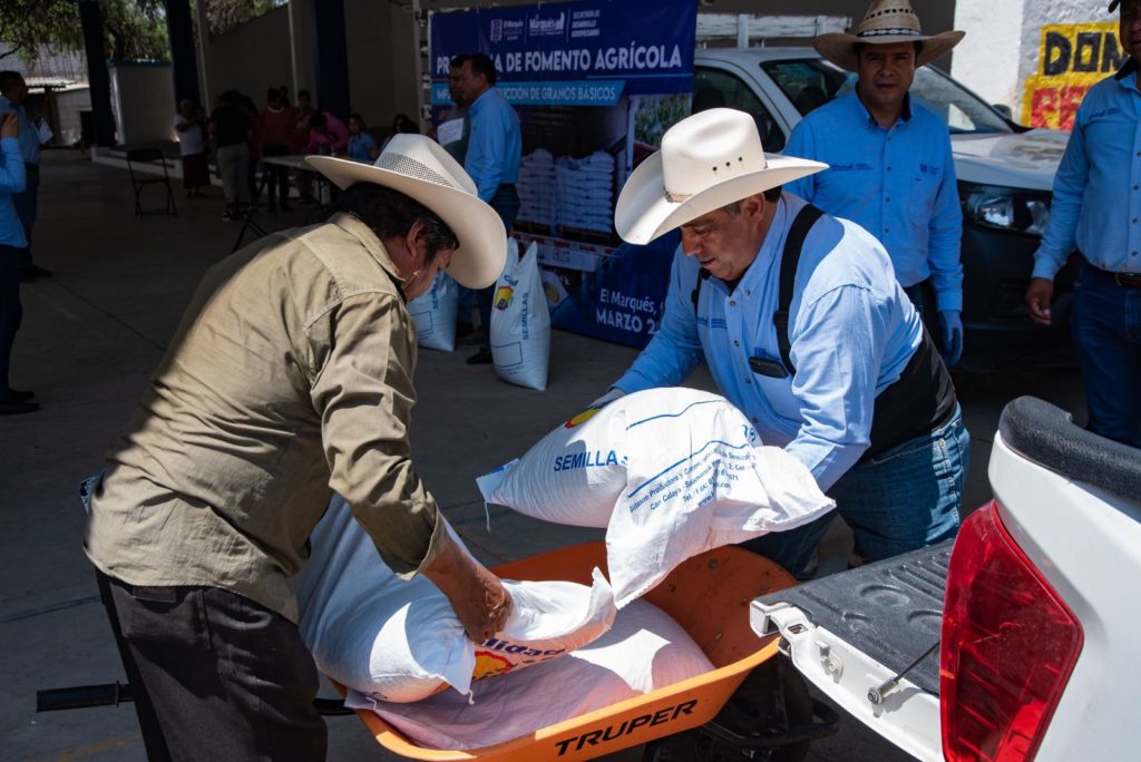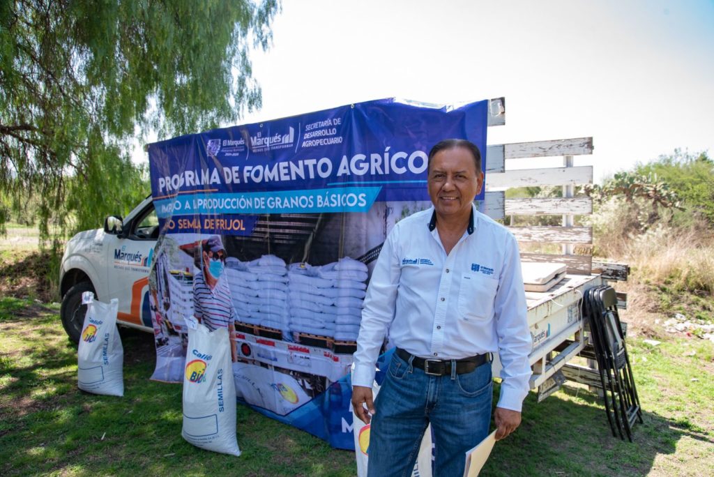 El municipio de El Marqués, a través de la Secretaría de Desarrollo Agropecuario realizó la entrega de apoyos de semilla de frijol de temporal, a 143 productores de 27 ejidos, con una inversión de 555 mil 680 pesos, como parte del Programa de Fomento Agrícola, subprograma impulso a la Producción de Granos Básicos.
