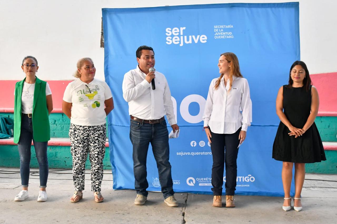 El Presidente Municipal de Jalpan de Serra, Rubén Hernández, en coordinación con la Secretaria de la Juventud del Estado, Virginia Hernández, realizaron la entrega de tableros y material deportivo en la cancha de usos múltiples de la colonia El Puente.