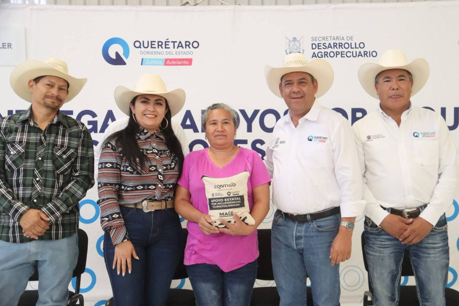 La Presidenta Municipal Ana Karen Jiménez acompañó al Ing. Rosendo Anaya Secretario de SEDEA a la entrega de apoyo por sequía a productores.