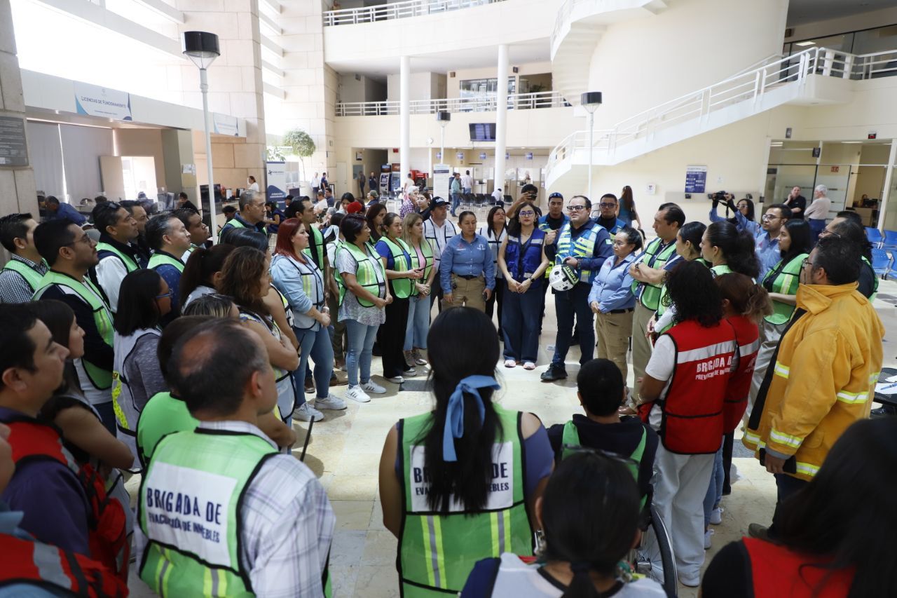 El Municipio de Querétaro participó en el Primer Simulacro Nacional de Sismos 2025 con la evacuación de mil 200 trabajadores del Centro Cívico, además del personal de las siete delegaciones, como parte de las acciones para fortalecer la cultura de la prevención y la protección civil.