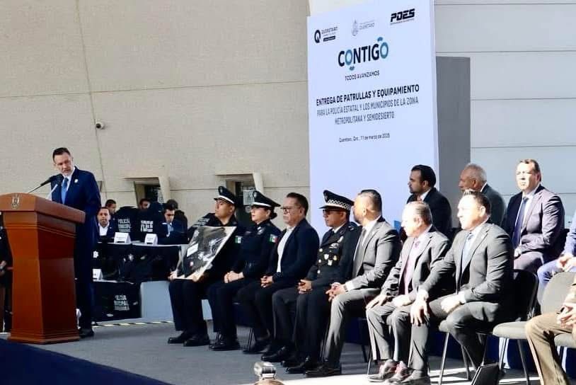 El Mtro. Carlos Manuel Ledesma Presidente Municipal De San Joaquín, estuvo presente en la «Entrega de Patrullas y Equipamiento para la Policía Estatal y los Municipios de la Zona Metropolitana y Semidesierto», evento encabezado por el Gobernador del Estado, Mauricio Kuri González.