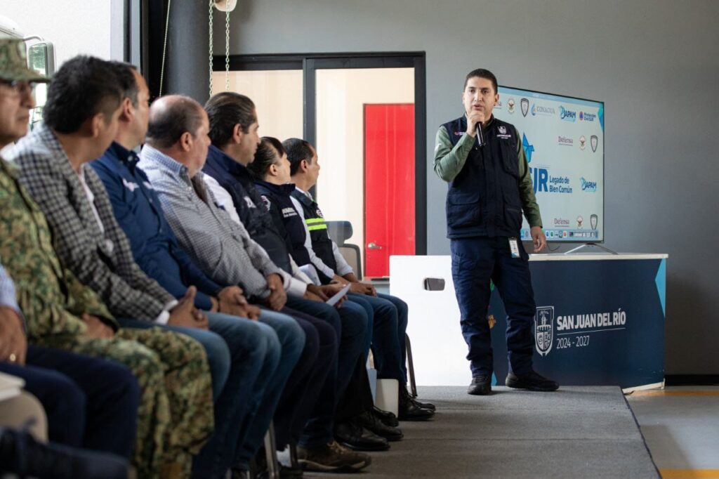 En el encuentro con la prensa estuvieron presentes el representante de la Guardia Nacional en San Juan del Río, Leonardo Almazán Bravo; el Comandante Interino del 7º Regimiento Mecanizado La Llave, Teniente Coronel del Arma Blindada, Francisco Javier Robles Marquez; el jefe de Gabinete del municipio de San Juan del Río, Gabriel Figueroa Uribe; el secretario de Gobierno, Abel Espinoza Suárez; el secretario de Seguridad Pública Municipal, Orlando Chávez Landaverde; la titular de Capacitación y Enlace de Bomberos, Verónica Laguna Luján.