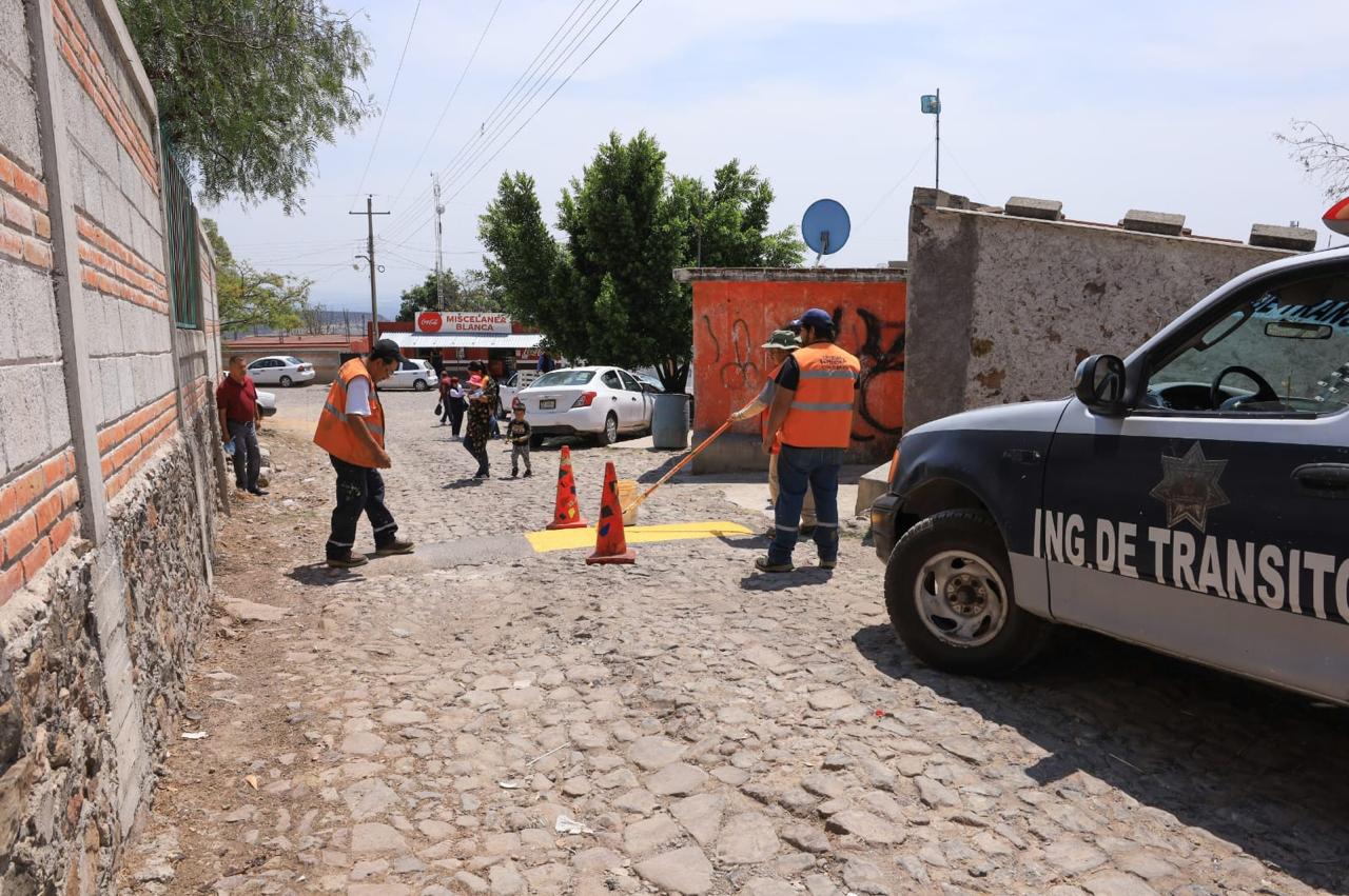 La Secretaría de Obras Públicas y Desarrollo Urbano, por su parte, a través de la Dirección de Obra Institucional y la Dirección de Ecología, implementó trabajos para pintar cuatro reductores de velocidad, colocar cuatro señaléticas restrictivas de límites de velocidad en zona escolar, dos señaléticas preventivas de cruce escolar, dos señaléticas de precaución y pintar dos pasos peatonales en zona escolar; además de donar ropa de segunda mano y reforestar con 90 árboles el campo de futbol y el jardín de niños.