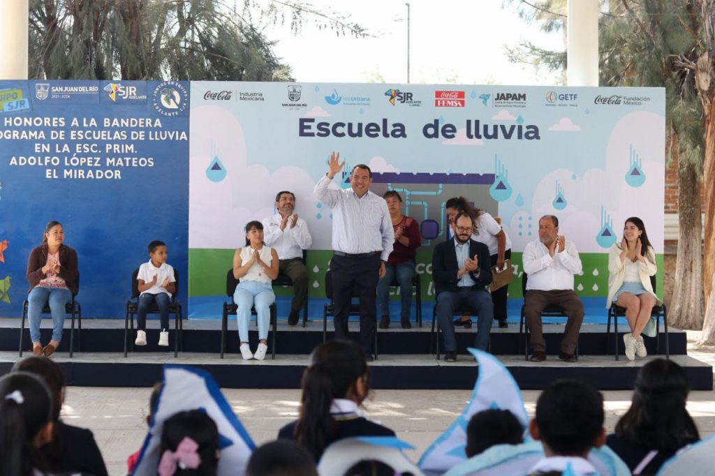 Con el propósito de brindar seguridad y autonomía hídrica, el presidente municipal de San Juan del Río, Roberto Cabrera Valencia, en equipo con Fundación Coca-Cola, la Industria Mexicana de Coca-Cola, Coca-Cola FEMSA y la organización Isla Urbana, puso en marcha el Programa Escuelas de Lluvia en la primaria Adolfo López Mateos, donde también encabezó los honores a la Bandera.