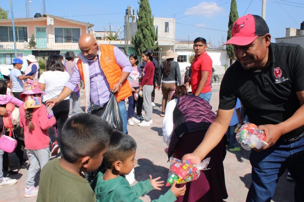A un Día de Navidad, el presidente municipal Óscar Pérez Martínez, acompañado de su equipo de trabajo, recorrió Santiago Mexquititlán, visitando sus 6 barrios y las comunidades de La Torre, Loma Linda, El Capulín y La Manzana, para realizar la entrega de aguinaldos a niñas, niños y familias.