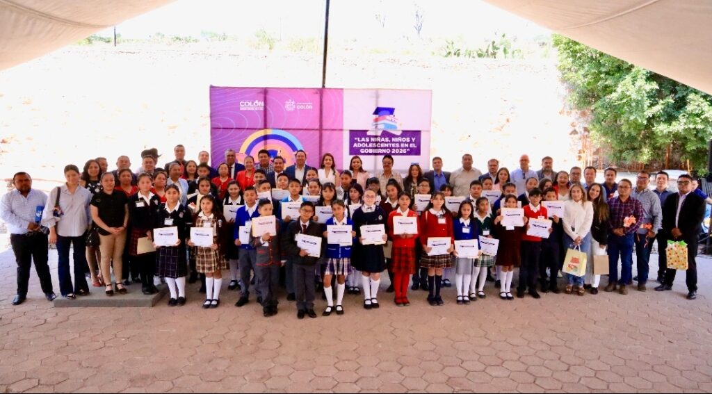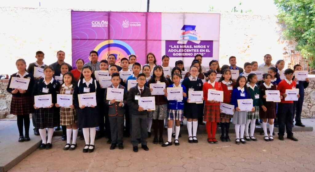 La Presidenta del DIF Municipal de Colón, Elena Arreguín de la Torre, presidió el evento del Programa «Las Niñas, Niños y Adolescentes en el Gobierno», donde 35 alumnos de escuelas de educación básica de Colón fungieron como servidores públicos, encabezados por el Niño Presidente Municipal de Colón, Natan Alonso Lugo Hernández.