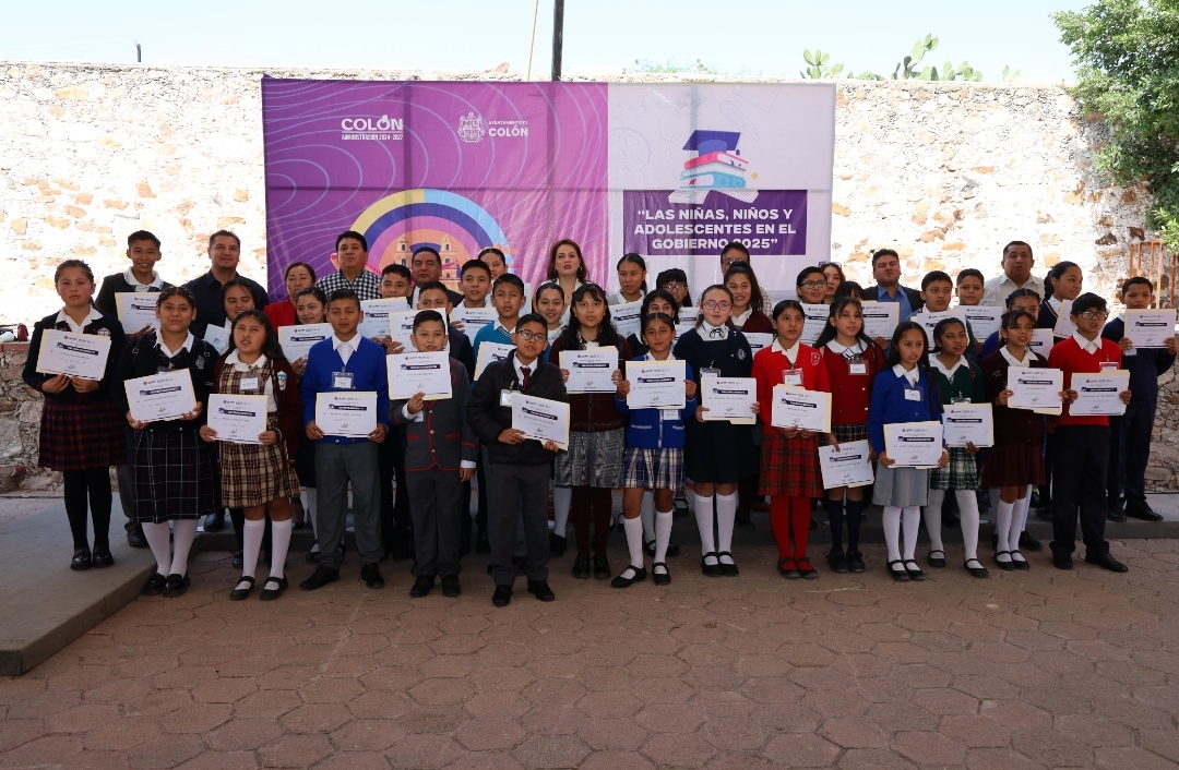 La Presidenta del DIF Municipal de Colón, Elena Arreguín de la Torre, presidió el evento del Programa «Las Niñas, Niños y Adolescentes en el Gobierno», donde 35 alumnos de escuelas de educación básica de Colón fungieron como servidores públicos, encabezados por el Niño Presidente Municipal de Colón, Natan Alonso Lugo Hernández.