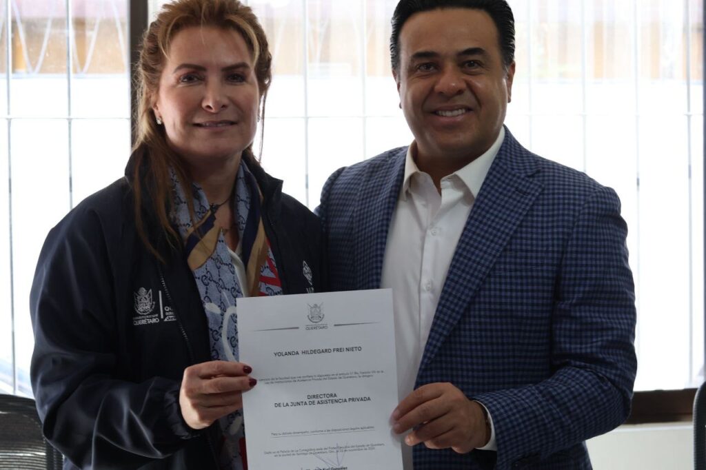 El titular de la Secretaría de Desarrollo Social en el Estado (SEDESOQ), Luis Nava, entregó el nombramiento como nueva directora de la Junta de Asistencia Privada en el Estado de Querétaro (JAPEQ) a Yolanda Hildegard Frei Nieto, para el periodo 2024-2027.