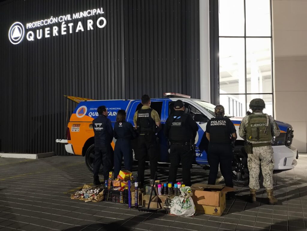 El Municipio de Querétaro, en conjunto con la Coordinación Municipal de Protección Civil, la Dirección de Inspección en Comercio Establecido y Vía Pública, la Secretaría de Seguridad Pública Municipal, la Policía Estatal y la Secretaría de la Defensa Nacional, realizó un operativo para prevenir riesgos a la población mediante el aseguramiento de material pirotécnico en puntos de venta no autorizados.