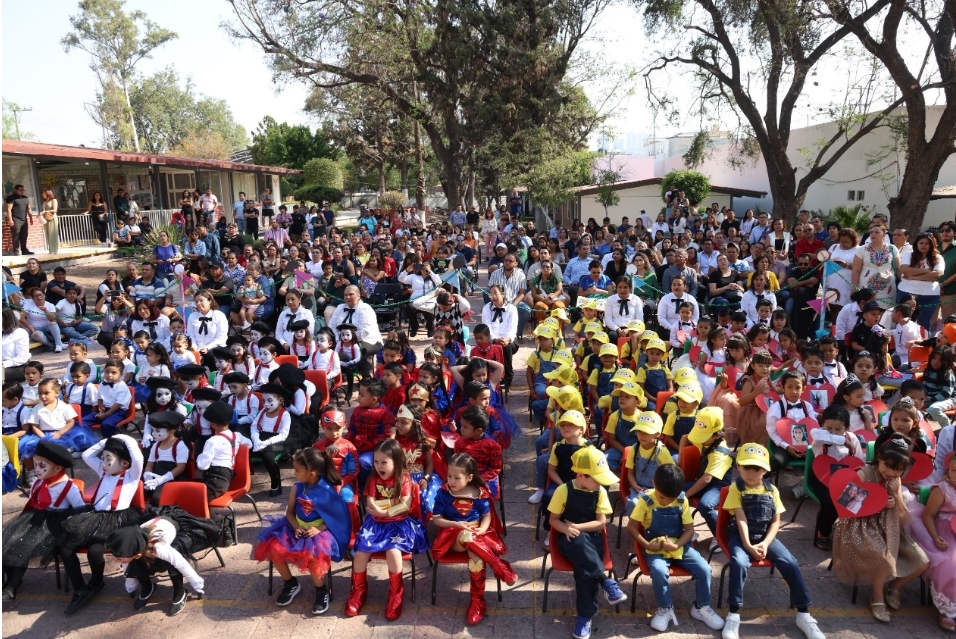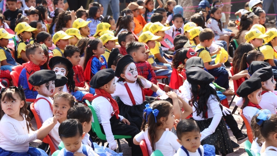 La coordinadora de los CAI 1 y 2, Laura Elena Paniagua García, felicitó a las mamás y papás por contribuir en el aprendizaje de sus hijas e hijos, y los invitó a disfrutar de esta celebración que fue preparada con mucho cariño por los más de 160 niñas y niños que se atienden en este centro, desde la etapa maternal hasta nivel preescolar.