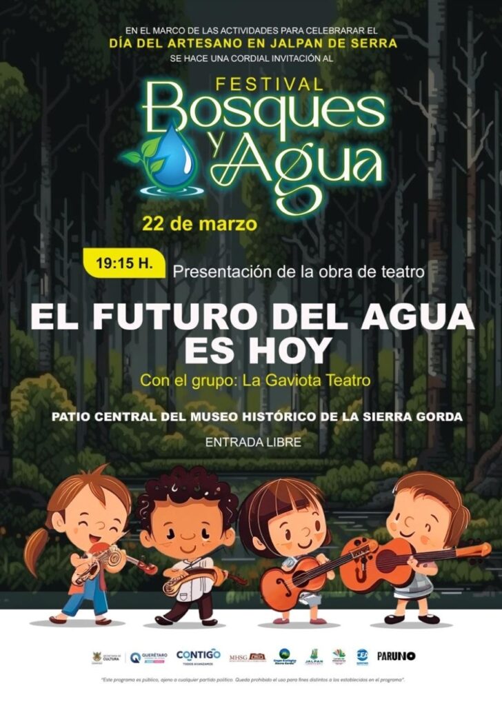 En el marco de las actividades para celebrar el Día de la y el Artesano en Jalpan de Serra, la Secretaría de Cultura del estado invita a asistir al festival “Bosques y agua”, que se llevará a cabo el próximo 22 de marzo con la presentación de la obra de teatro “El futuro del agua es hoy”, a cargo de la compañía La Gaviota Teatro, en el Museo Histórico de la Sierra Gorda.