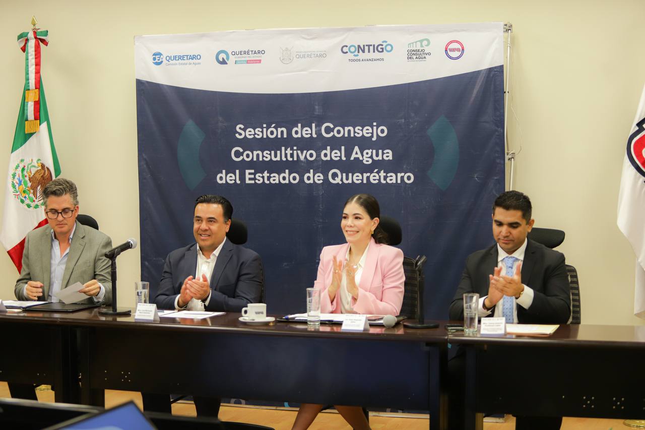 La sesión de este Consejo Consultivo del Agua fue encabezada por su Presidenta, Katia Reséndiz Jaime y por el Vocal Ejecutivo de la Comisión Estatal del Agua, Luis Alberto Vega Ricoy, así como por el anfitrión, Carlos Antonio Contreras López, Rector de la Universidad Politécnica de Querétaro.