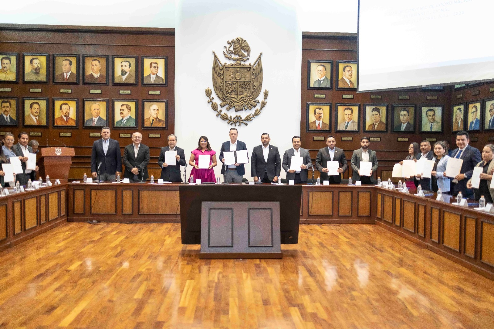 El convenio fue firmado por los 18 municipios, el Instituto Electoral del Estado de Querétaro y la Fiscalía del Estado, así como por el Gobernador del Estado como testigo de honor.