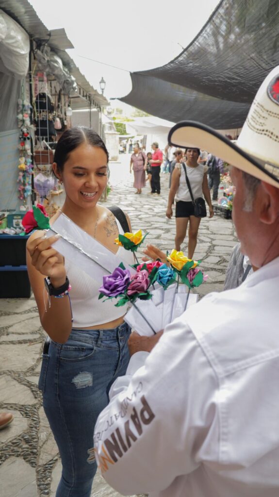 En las inmediaciones del centro de Jalpan Payín Muñoz estuvo felicitando a las mamás jalpenses con quienes platico sobre su proyecto y los programas y apoyos en los que se estarán trabajando para mitigar las necesidades de las jefas de familia, entre los que destacó el refugio para aquellas que sufran de violencia, proyectos productivos para el fomento del autoempleo y las becas tanto deportivas como académicas para apoyarlas con la educación de sus hijos.