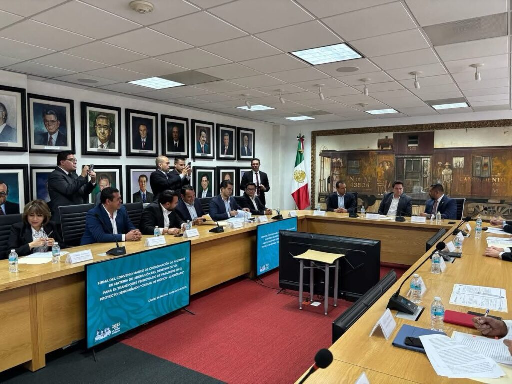 El Presidente Municipal de Pedro Escobedo Beto Nava firma el Convenio Marco de Coordinación para la liberación del derecho de vía del proyecto ferroviario Ciudad de México – Querétaro.