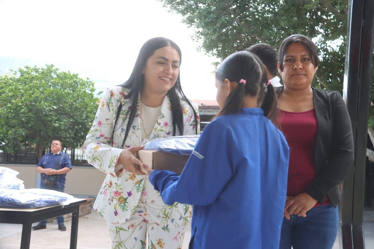 La Presidenta Municipal Ana Karen Jiménez asistió a la Escuela Primaria Lic. Alfredo V. Bonfil, acompañando al Lic. Javier Alcaraz Vergara, Jefe del Departamento de Difusión Institucional de USEBEQ, en la entrega de útiles escolares y uniformes a 210 alumnos.