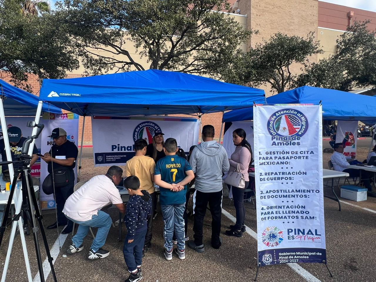 La Presidenta Municipal de Pinal de Amoles, en compañía del Ing. Iván Zarate Muñoz, Presidente del SMDIF y personal de Atención al Migrante del municipio, se encuentran en la Arena Energy, Laredo Texas, brindando atención a migrantes de la Sierra Gorda para llevar a cabo el Registro de los vehículos que participarán en la 18ª Caravana Migrante.