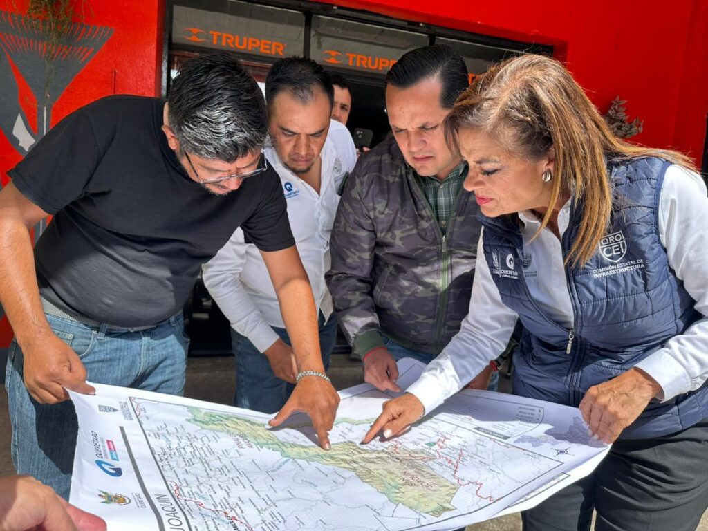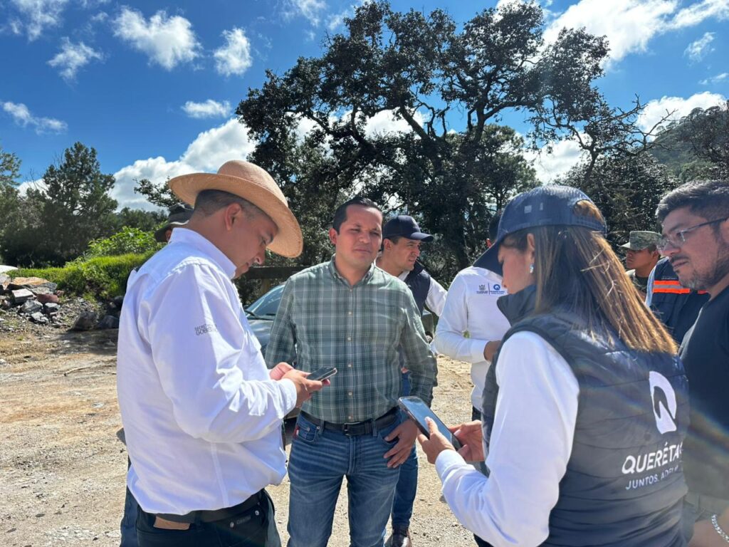 El encuentro tuvo como objetivo coordinar los trabajos que se están realizando para atender los derrumbes que han afectado a las comunidades de Agua Fría de Gudiño, Joyas de Bucareli y La Meca, pertenecientes a Pinal de Amoles y ubicadas en la zona limítrofe con San Joaquín.