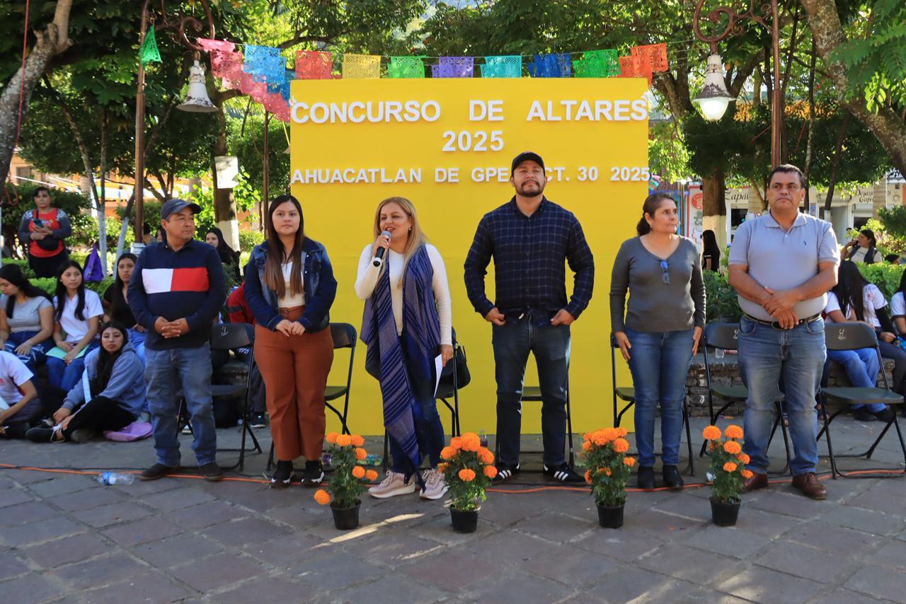La presidenta municipal de Pinal de Amoles, Lupita Ramírez Plaza, en compañía de regidores del H. Ayuntamiento, encabezó la premiación del Concurso de Altares y de Catrinas y Catrines, realizado en la delegación de Ahuacatlán de Guadalupe.
