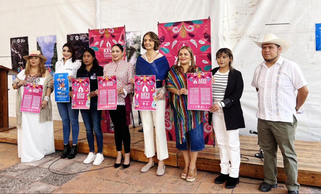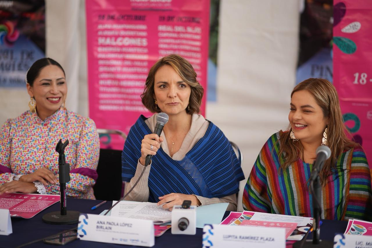 Esta mañana, la Presidenta Municipal de Pinal de Amoles, Lupita Ramírez Plaza, junto con la Lic. Ana. Paola López Birlain, Secretaria de Cultura del Estado de Querétaro, encabezaron una rueda de prensa para anunciar el XXVII Festival de Huapango en Ahuacatlán de Guadalupe, uno de los eventos culturales más importantes de la región. Esta rueda de prensa, que se realizó en el marco del evento “Ar Tai Artesanal”, destaca qué Ahuacatlán de Guadalupe «La Casa del Huapanguero» busca resaltar la riqueza cultural y tradicional de este evento, reuniendo a exponentes del huapango de toda la región Huasteca. Ramírez Plaza destacó la relevancia del festival no solo para la cultura local, sino como una oportunidad de reactivar la economía y el turismo.