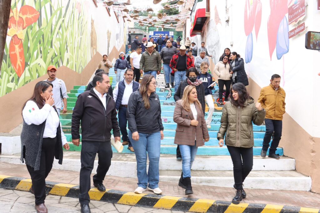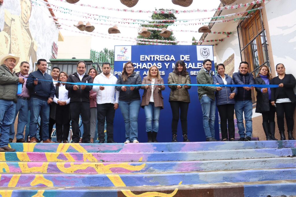 La Presidenta Municipal de Pinal de Amoles, Lupita Ramírez Plaza, encabezó la entrega oficial de la primera etapa del programa «Pinta de Fachadas y Murales», acompañada por el senador Agustín Dorantes Lambarri, la Secretaria de Desarrollo Social del Estado, Diana Pérez Mejía, y el presidente del SMDIF, Ing. Iván Zárate Muñoz. Este proyecto, desarrollado en el primer cuadro de la cabecera municipal, busca no solo embellecer el entorno, sino también promover la cultura y las tradiciones de Pinal a través de murales que reflejan la historia y esencia de la comunidad.