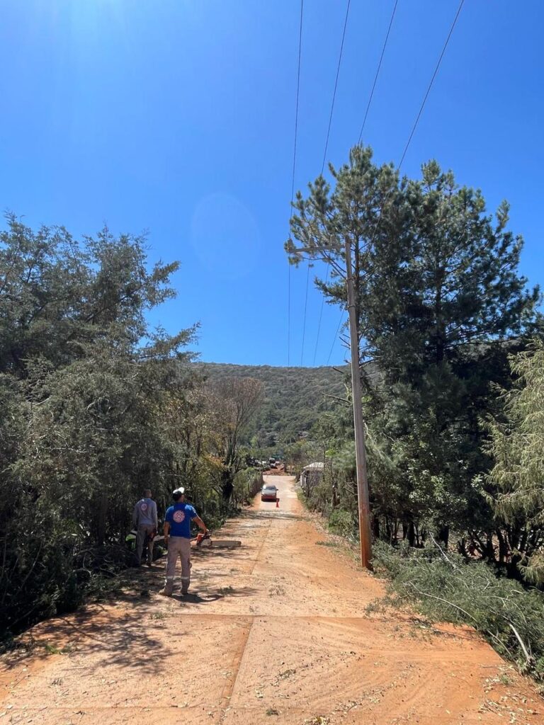 Para realizar dicho trabajo PC municipal se coordinó con el ingeniero Pablo Tristán encargado de la zona de Pinalito de la Cruz de la CFE, quién envio dos elementos para brindar apoyo, logrando la poda de 7 árboles dejando la vía libre y así evitando los problemas de corte de luz.