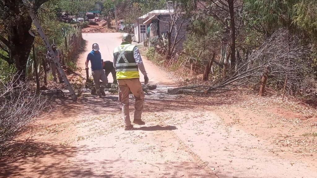 Debido a la programación de corte de energía eléctrica por parte de la Comisión Federal de Electricidad (CFE) para realizar reparaciones en la localidad de El Madroño, personal de PC solicitó a dicha dependencia federal el permiso para derrama árboles que afectaban el flujo de energía cerca de la escuela primaria de Pinalito de la Cruz, ya que los cables de alta tensión pegaban con las ramas, principalmente con los vientos.