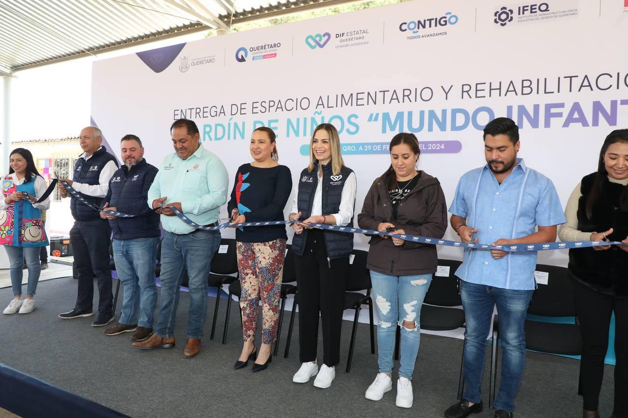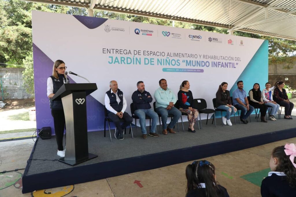 Con el objetivo de brindar desayunos en la modalidad caliente, la presidenta del Patronato del Sistema Estatal DIF, Car Herrera de Kuri, puso en marcha el aula cocina escolar del Jardín de Niños “Mundo Infantil”, localizado en la comunidad Laguna de Servín en el municipio de Amealco de Bonfil.