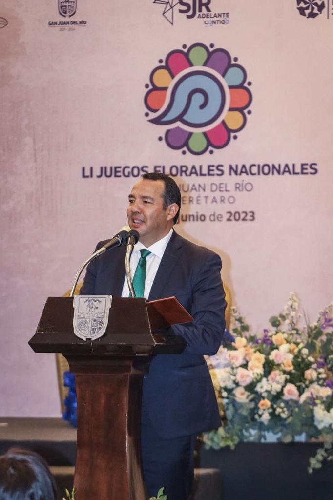 El presidente municipal de San Juan del Río señaló que los Juegos Florales Nacionales se han constituido como un foro importante para las y los poetas, quienes ven en este una oportunidad para manifestarse. Destacó que la presente edición, desarrollada entre poesía y música, ofreció expresiones donde se entretejieron sentimientos.