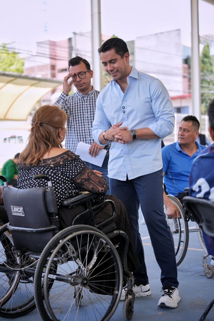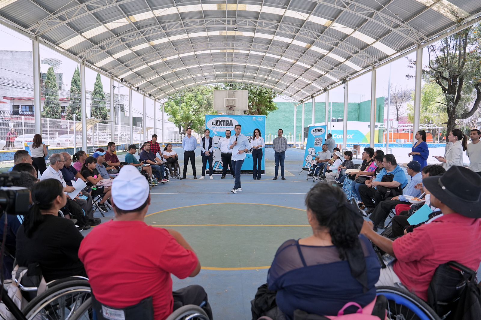 El presidente municipal de Querétaro, Felifer Macías, se reunió con un grupo de deportistas con discapacidad permanente en la Unidad Deportiva Josefa Ortiz de Domínguez, para presentarles el programa social El Extra, del cual pueden ser beneficiarios.