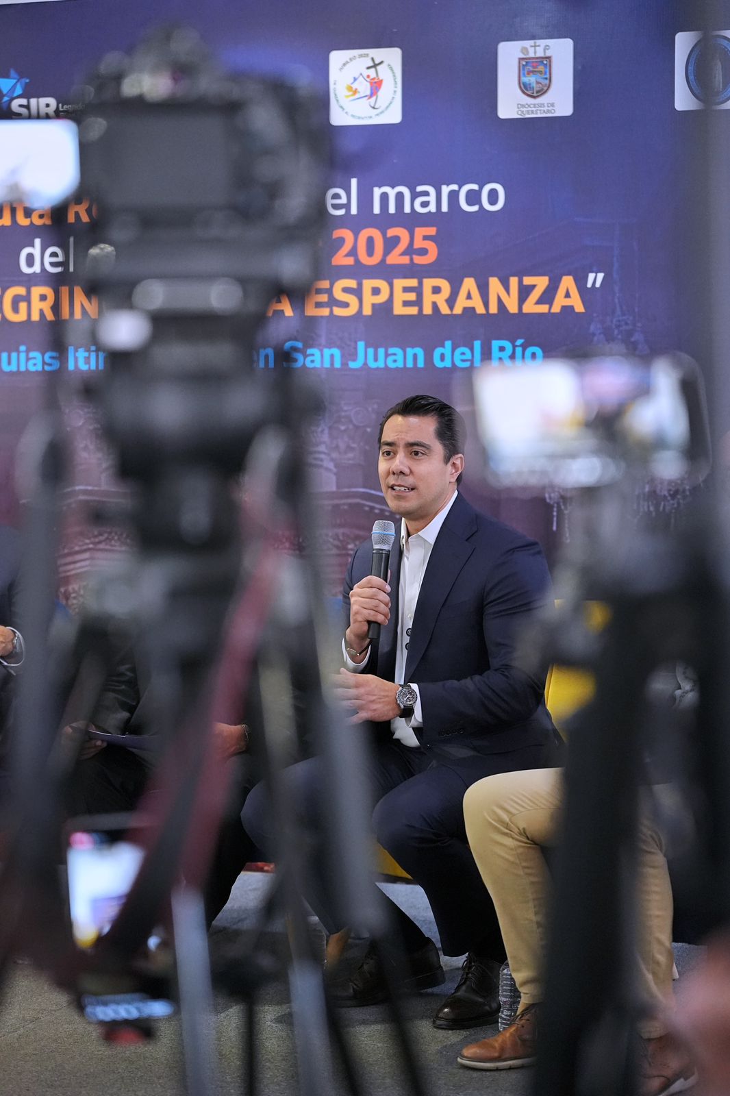 El presidente municipal de Querétaro, Felifer Macías, encabezó la presentación de la Ruta Religiosa en el marco del Año Jubilar 2025 “Peregrinos de la Esperanza”, en conjunto con el alcalde de San Juan del Río, Roberto Cabrera, y el Vicario General de la Diócesis de Querétaro, Monseñor Martín Lara Becerril.