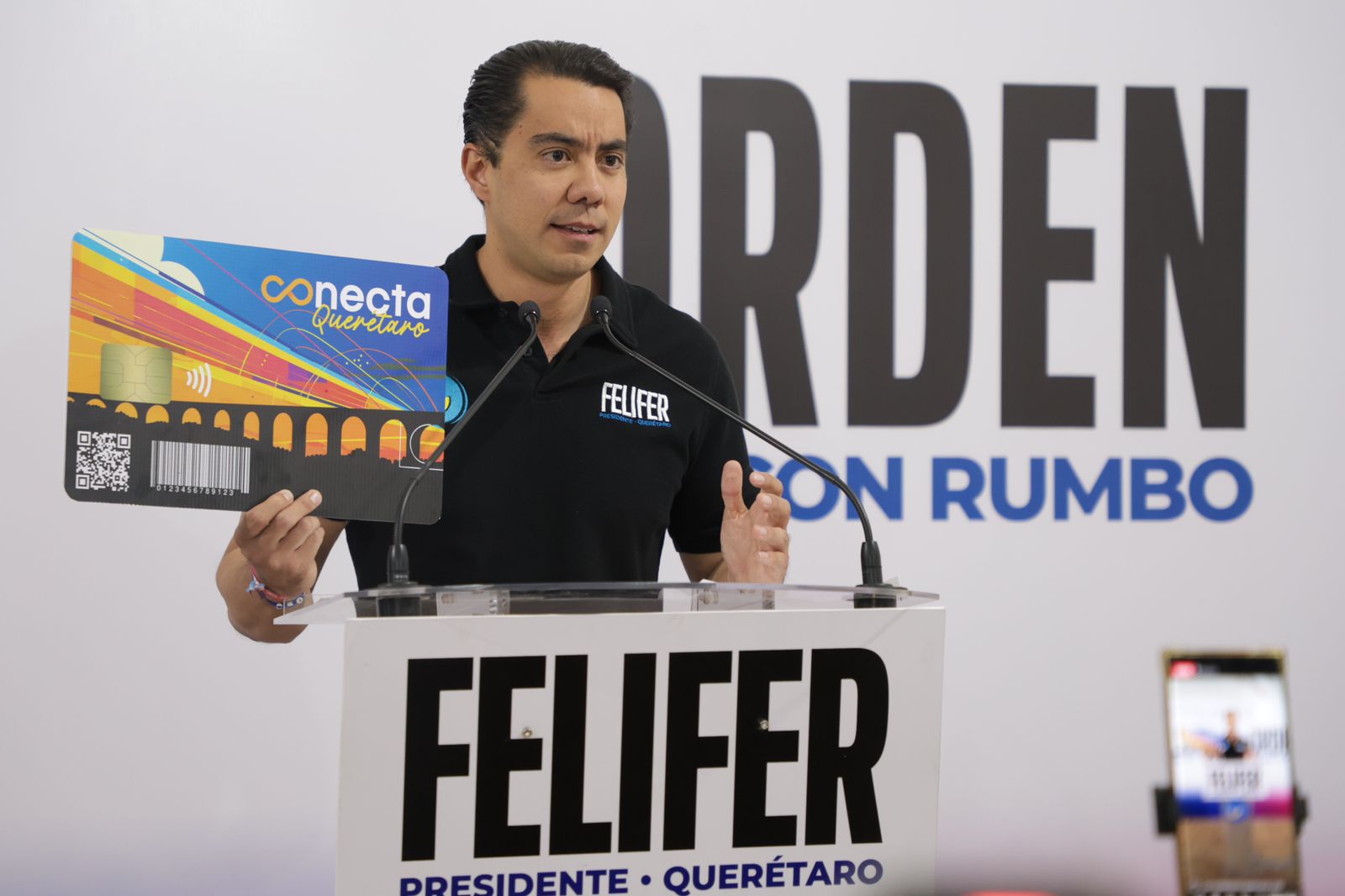 “Es la tarjeta municipal que va a conectar a la administración con todos los beneficiarios, en servicios públicos, en participación ciudadana, en mejora regulatoria. Queremos eficientar los procesos, hacerlos más transparentes, mucho mejor auditables, eliminar intermediarios, eliminar opacidad para que la gente tenga directamente los depósitos, los apoyos a los que han sido acreedores, monitoreo de sus servicios públicos de alguna gestión que estén realizando y que podamos vincular todo a esta tarjeta”, señaló el candidato.