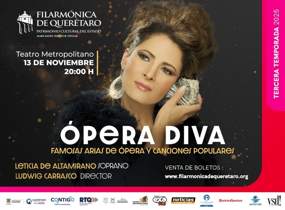 La Orquesta Filarmónica del Estado de Querétaro (OFEQ) invita al público a vivir una experiencia única con “Ópera Diva: Una noche para recordar”, evento que promete colcarse entre los más memorables de la temporada y que se presentará el 13 de noviembre, a las 20:00 horas, en el Teatro Metropolitano.