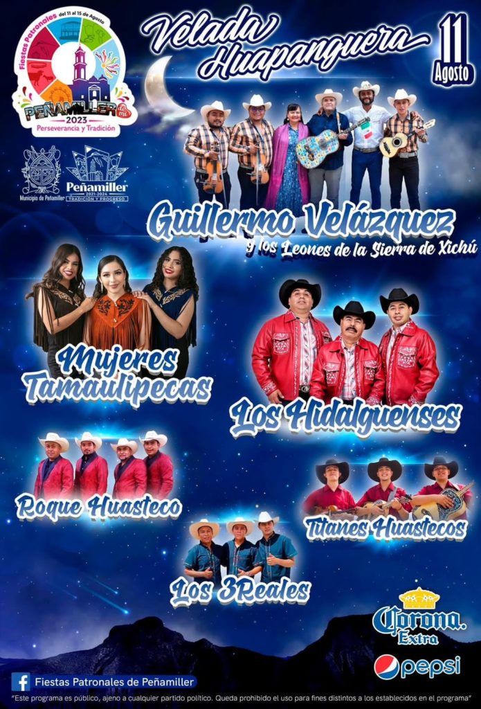 Presentaciones estelares para las fiestas patronales en el municipio de PEÑAMILLER desde el 11 al 15 de agosto 2023